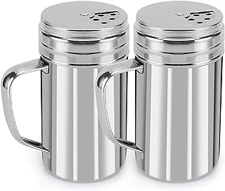 Accmor ステンレススチール スパイスシェーカー ハンドル付き 調味料コンテナ ステンレススチール ドレッジ 塩/砂糖/スパイス/ペッパーシェーカー 回転カバー付き