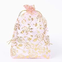 nbeads 約100枚 18x13cm ローズ柄 オーガンジー巾着袋 ギフト包装 ドローストリングバッグ ジュエリー プレゼント用 ラッピング袋 結婚式 誕生日 ウェディング用 パールピンク