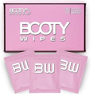 BOOTY WIPES for Women - 30 Individually Wrapped Flushable Feminine Wet Wipes for Travel, Flushable Wipes for Adults, pH Balanced Wipes with Vitamin E & Aloe Vera