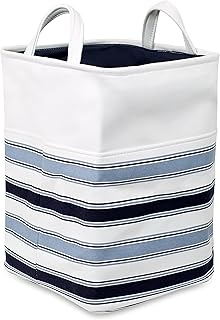 (Rectangle, Blue Stripes) - BirdRock Home Canvas Laundry Hamper with Handles Blue Stripes Transport Easily Dirty Clothes Storage Bendable and Foldable Rectangle Laundry Bag