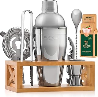 25オンス カクテルシェーカーセット 16個 ミクソロジー バーテンダーキット 竹スタンド付き - プロフェッショナルステンレススチール バーテンダーキット - 完璧なホームバーツールギフトセット ドリンクミキシング用