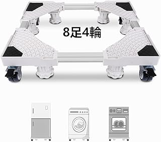洗濯機 台 冷蔵庫置き台 キャスター付 かさ上げ 移動式 360度回転 昇降可能 幅/奥行45~70cm 減音効果 防振パッド付き 耐荷重600kg 付日本語説明書 (新4足8輪)