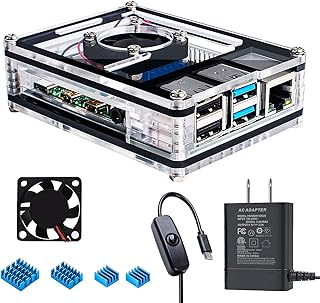 Smraza Raspberry Pi 4ケース ラズパイ 4Bアクリルケース 冷却ファン付き35mm、4個入りヒートシンク、Raspberry Pi 4モデルB用5V 3A USB-C (Type C)電源 RPI 4 8GB / 4GB / 2GBに対応(RPIボードは含まれていません)