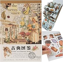 シール フレークシール 手帳ステッカー 和紙ステッカーれるヴィンテージの古いファッションの女性の動物の花の植物ノート アルバム カレンダー(合計50ページ)